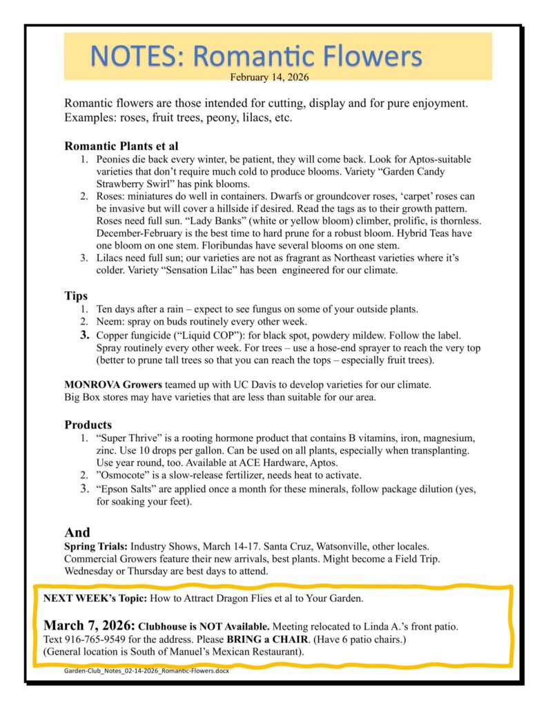 A page full of recommended reading, listening, and viewing from our members and some class summaries and past newsletters. For more news, views, and inspiration, don’t forget to check out our blog. If you’d like to submit an article of interest for the Garden Cruzers blog, please let CJ know.